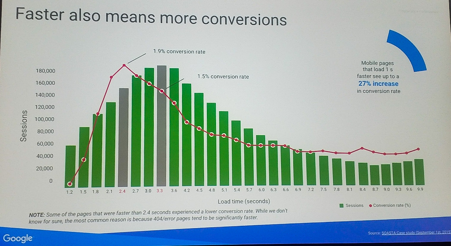 Martin Ramel på Google viasade ännu en uppmuntrande statistik från SOASTA om sambandet mellan mobila ehandelssajtens hastighet och försäljningen.