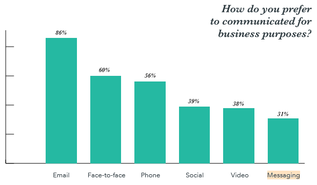 31 % av B2B-företagen svarade i Hubspots undersökning State of Inbound 2017 att de föredrar meddelandetjänster för affärskommunikation.