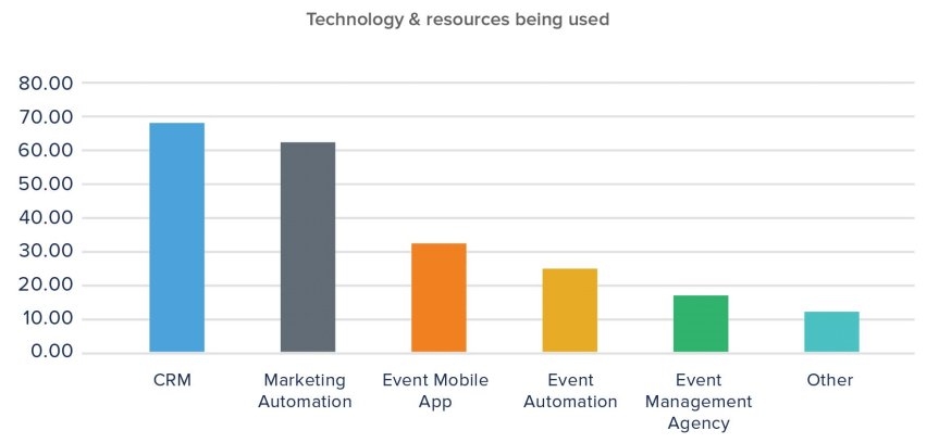 B2B-marknadsförare använder sig av olika resurser före, under och efter evemanget. Främst är det CRM, marketing automation och eventappar.